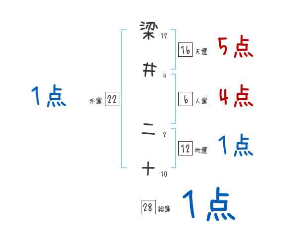 梁井二十さんの画数の鑑定結果