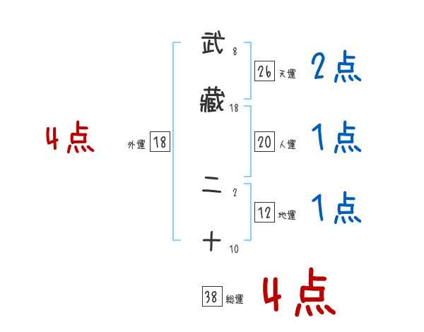 武藏二十さんの画数の鑑定結果