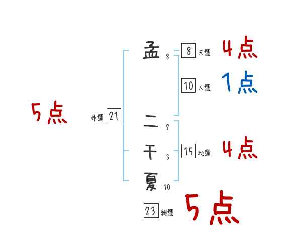 孟二千夏さんの画数の鑑定結果