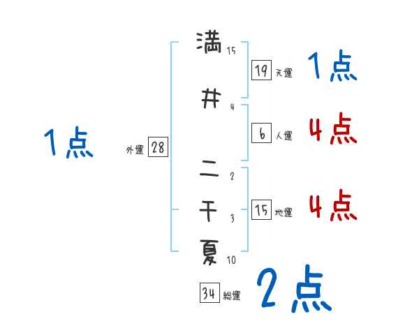 外運![]() | 満井二千夏さんの外運は28画の1つ星!家庭環境に注意。スポーツで活躍できる能力があるかも。 生活面を象徴する運勢です。外部から受ける影響力を表し、結婚運、家庭運や職場、環境への順応性を表します。 |