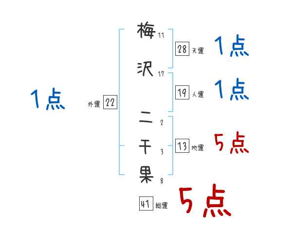 梅沢二千果さんの画数の鑑定結果