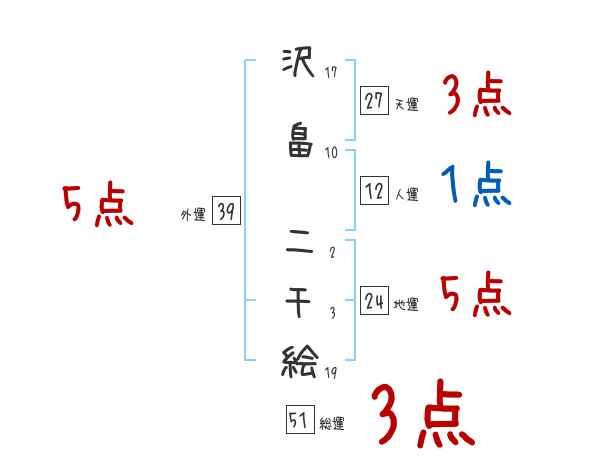 沢畠二千絵さんの画数の鑑定結果