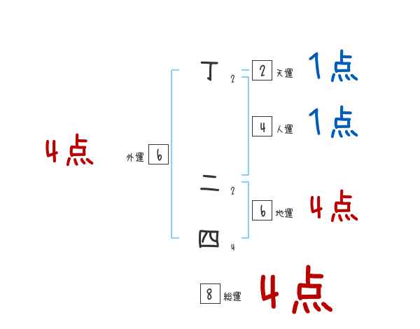 人運![]() | 丁二四さんの人運は4画の1つ星!感情が不安定で苦労するかも。周囲との協調を心掛けましょう。 性格や才能などを表す2番目に重要な運勢です。人間関係や協調性、社会的な成功に影響します。主に20歳から50歳ぐらいまでの中年期の運勢を表します。 |