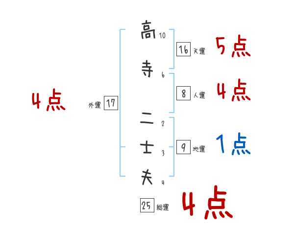高寺二士夫さんの画数の鑑定結果