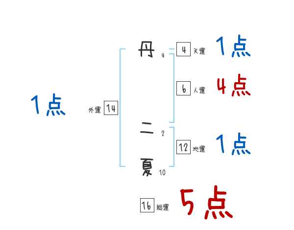 天運![]() | 丹二夏さんの天運は4画の1つ星!感情が不安定で苦労するかも。周囲との協調を心掛けましょう。 家系が持つ宿命的な運勢を表します。祖先から受け継いだ苗字ですので自分の力が及びません。家柄を象徴します。 |