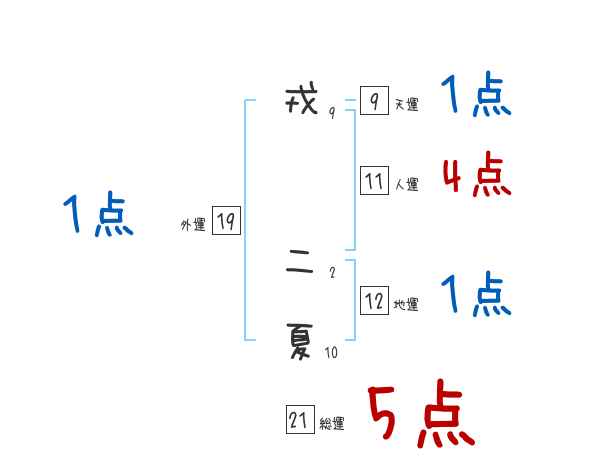戎二夏さんの画数の鑑定結果