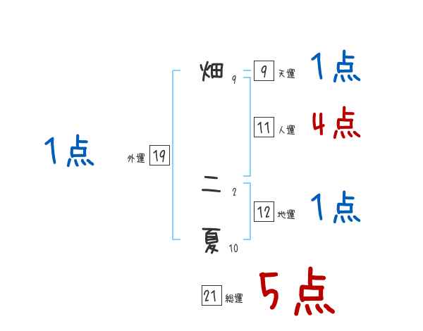 畑二夏さんの画数の鑑定結果
