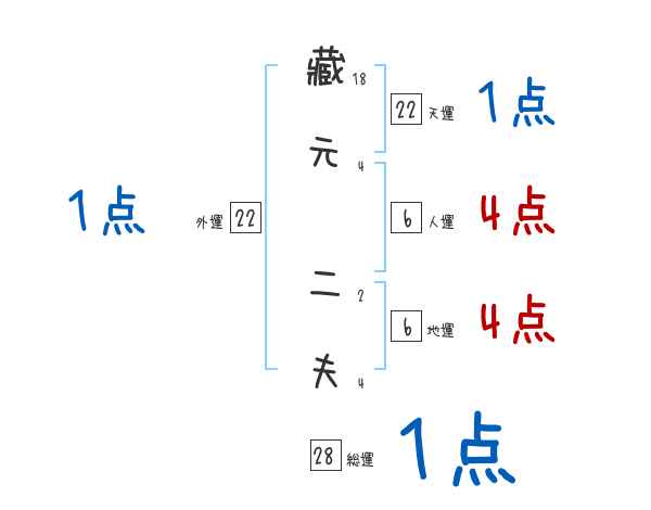 藏元二夫さんの画数の鑑定結果
