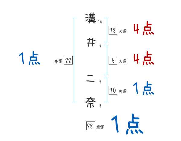 溝井二奈さんの画数の鑑定結果