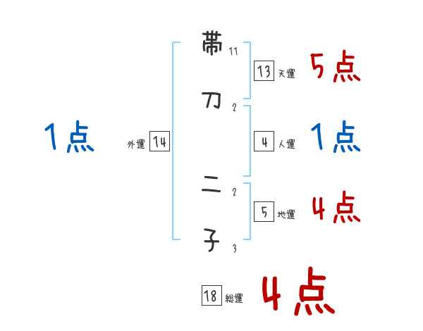 帯刀二子さんの画数の鑑定結果