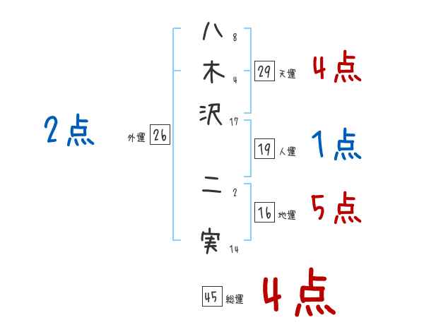 八木沢二実さんの画数の鑑定結果