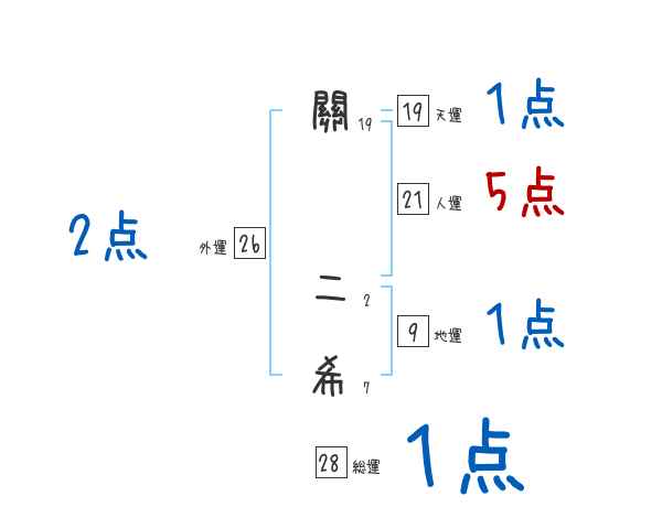 關二希さんの画数の鑑定結果