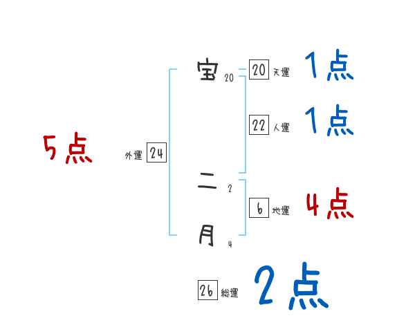 宝二月さんの画数の鑑定結果