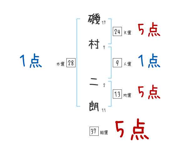 磯村二朗さんの画数の鑑定結果