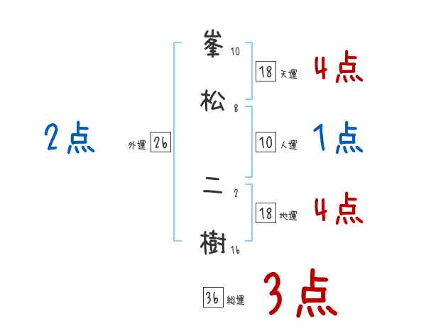 峯松二樹さんの画数の鑑定結果
