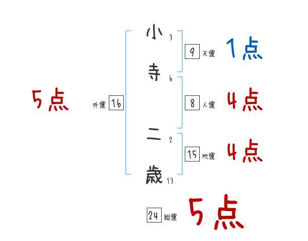 家系が持つ宿命的な運勢を表します。祖先から受け継いだ苗字ですので自分の力が及びません。家柄を象徴します。