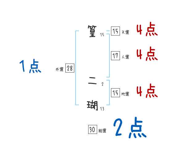 篁二瑚さんの画数の鑑定結果
