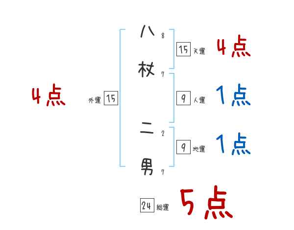八杖二男さんの画数の鑑定結果