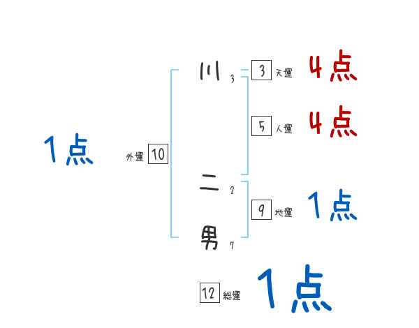 川二男さんの画数の鑑定結果