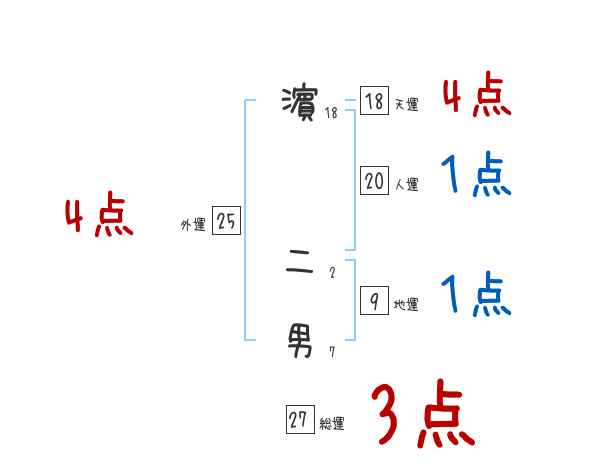 濵二男さんの画数の鑑定結果