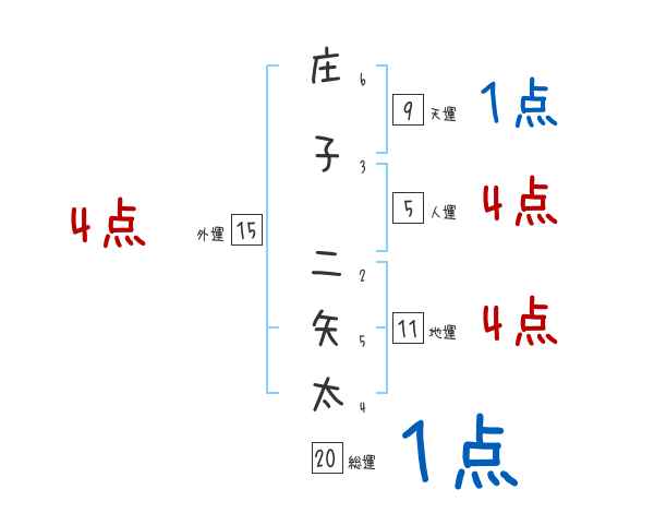 庄子二矢太さんの画数の鑑定結果