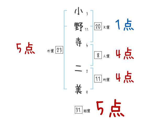 小野寺二美さんの画数の鑑定結果