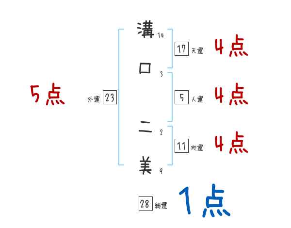 溝口二美さんの画数の鑑定結果