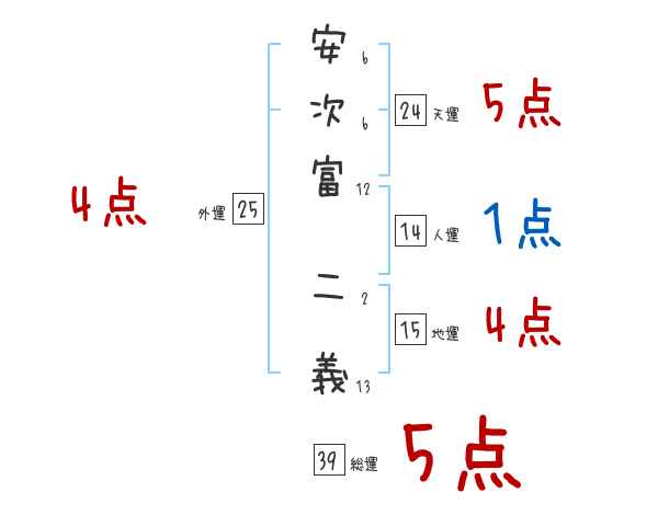 安次富二義さんの画数の鑑定結果