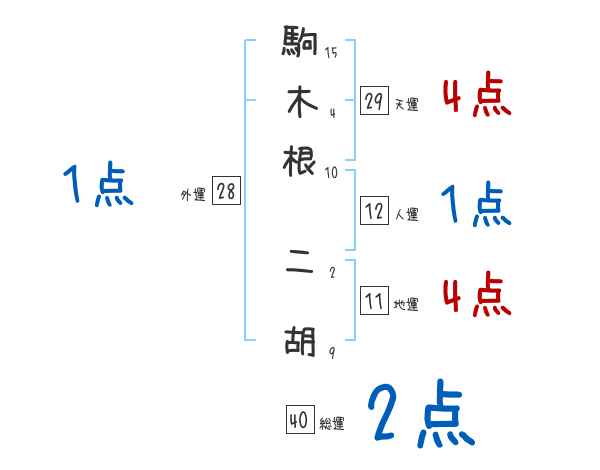 駒木根二胡さんの画数の鑑定結果