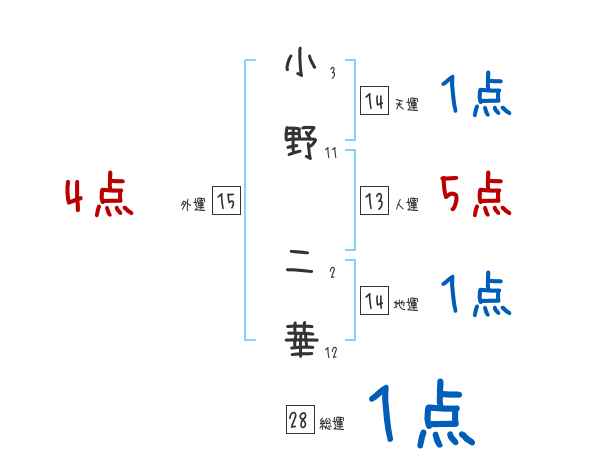 小野二華さんの画数の鑑定結果