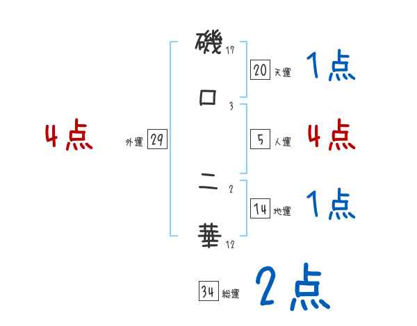 磯口二華さんの画数の鑑定結果