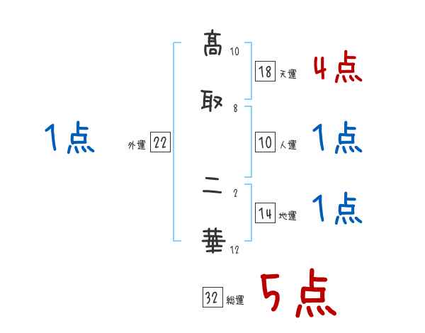 髙取二華さんの画数の鑑定結果