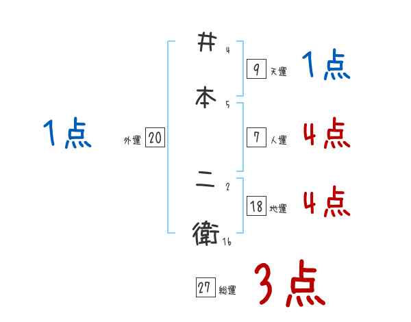 井本二衛さんの画数の鑑定結果