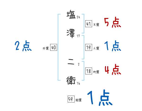 塩澤二衛さんの画数の鑑定結果