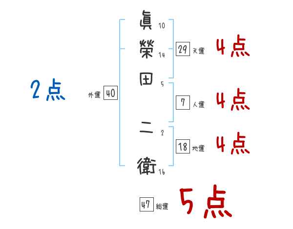 眞榮田二衛さんの画数の鑑定結果