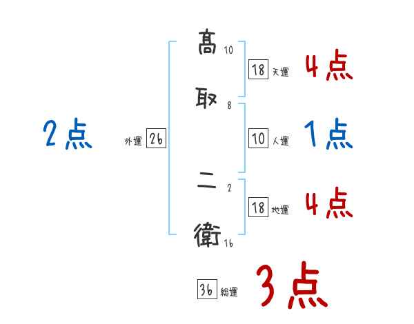 髙取二衛さんの画数の鑑定結果