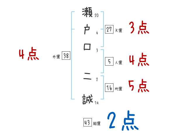 瀬戸口二誠さんの画数の鑑定結果