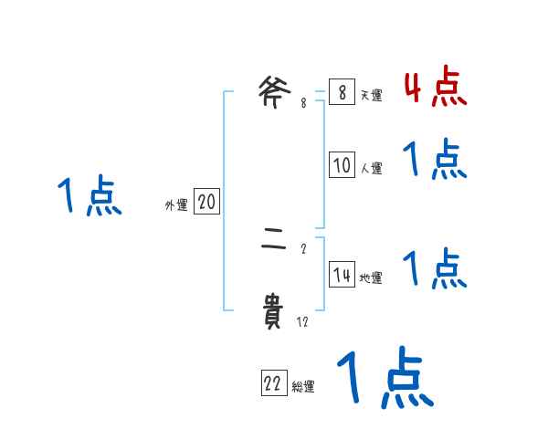 斧二貴さんの画数の鑑定結果