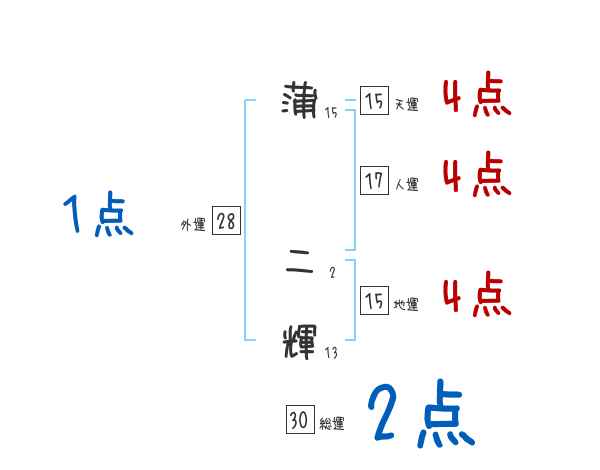天運![]() | 蒲二輝さんの天運は15画の4つ星!人徳があり出世する。順調に物事を進め円満な人生。 家系が持つ宿命的な運勢を表します。祖先から受け継いだ苗字ですので自分の力が及びません。家柄を象徴します。 |