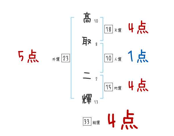 髙取二輝さんの画数の鑑定結果