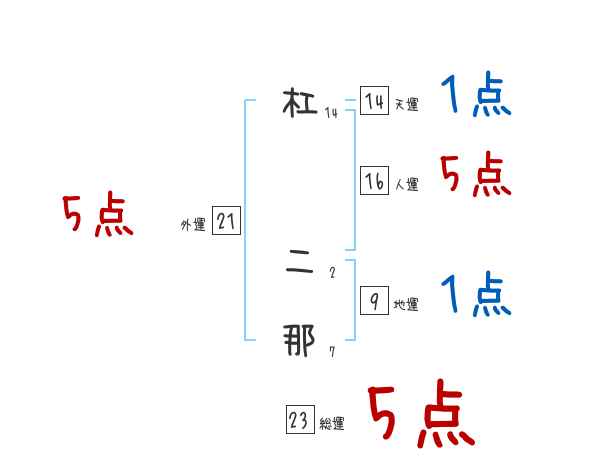 杠二那さんの画数の鑑定結果