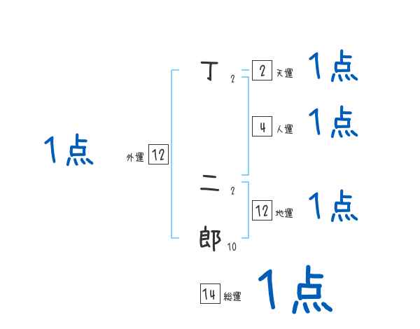 丁二郎さんの画数の鑑定結果