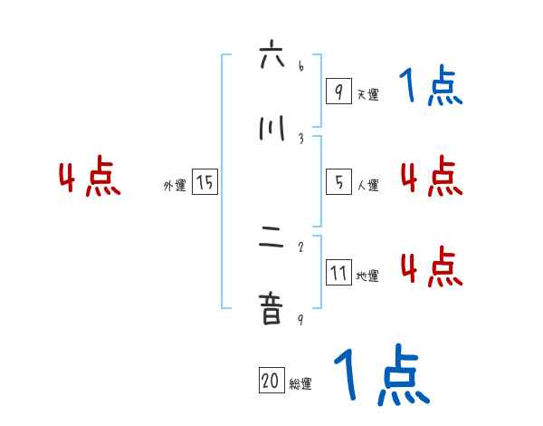 天運![]() | 六川二音さんの天運は9画の1つ星!消極的で才能を発揮することが苦手なことも。周りの意見に耳を傾けましょう。 家系が持つ宿命的な運勢を表します。祖先から受け継いだ苗字ですので自分の力が及びません。家柄を象徴します。 |