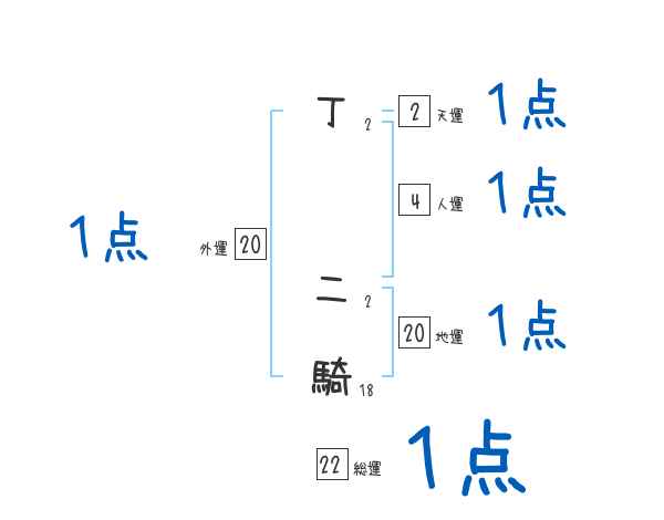 丁二騎さんの画数の鑑定結果