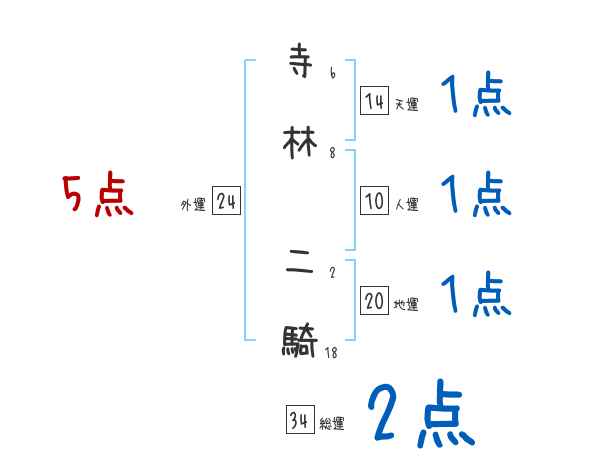 寺林二騎さんの画数の鑑定結果