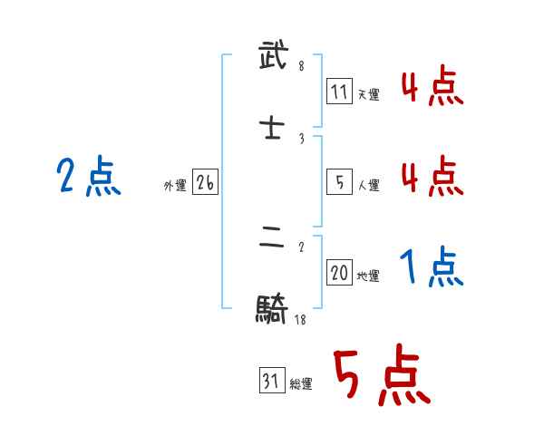 武士二騎さんの外運は26画の2つ星