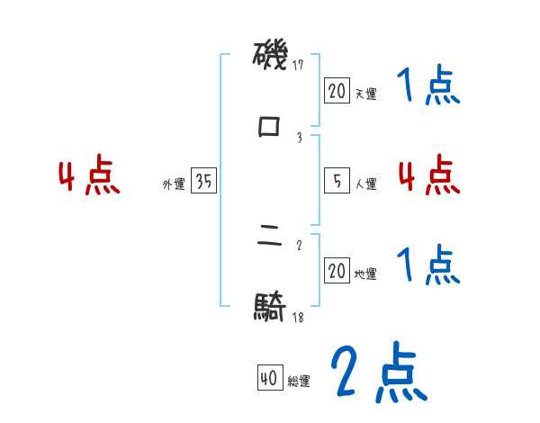 磯口二騎さんの画数の鑑定結果
