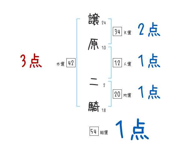 譲原二騎さんの画数の鑑定結果