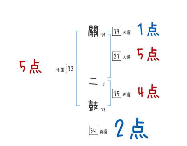 關二鼓さんの画数の鑑定結果