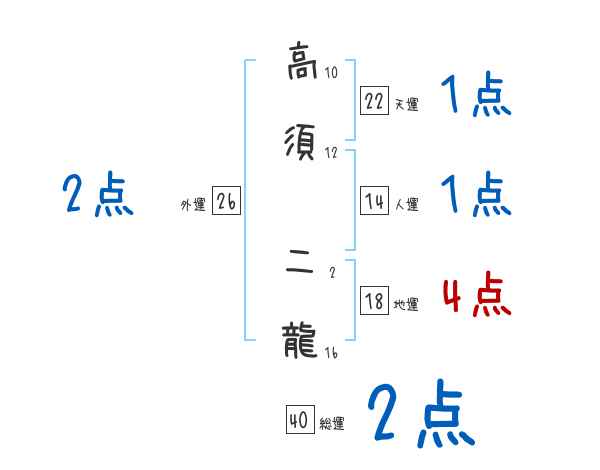 高須二龍さんの画数の鑑定結果